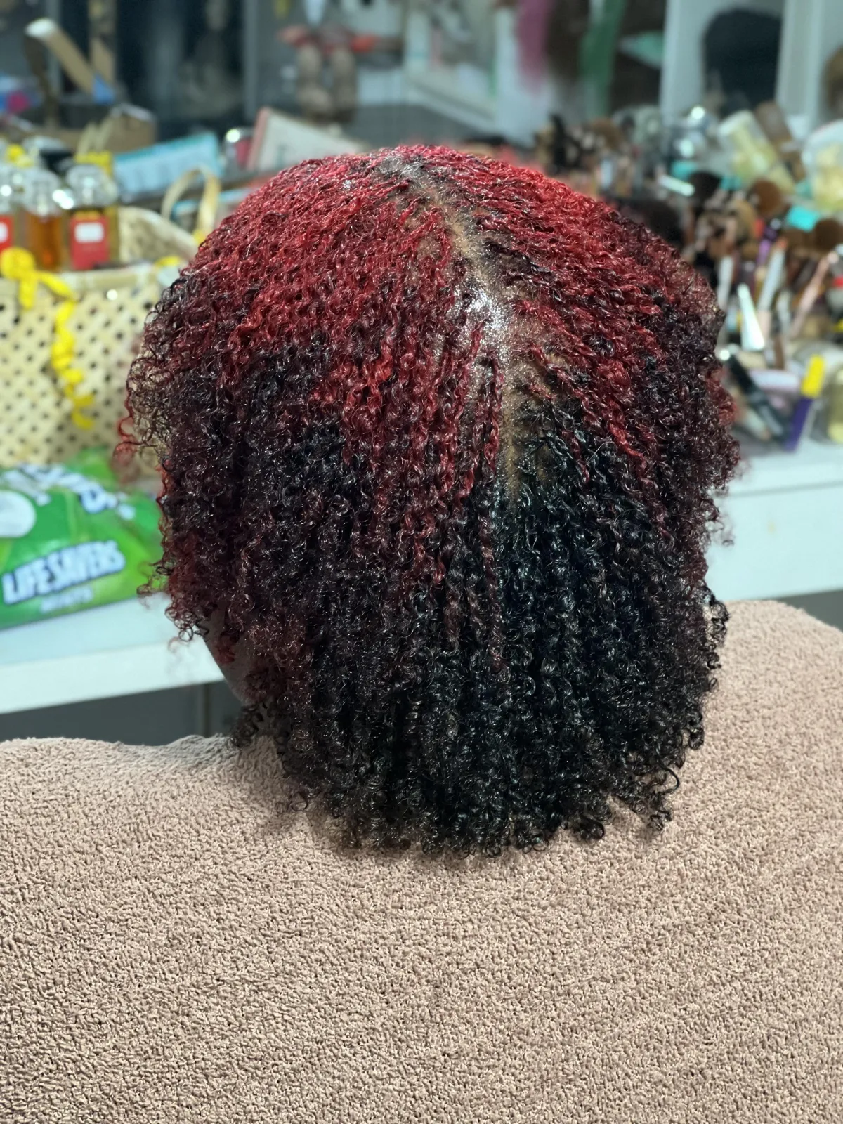 A retie is a maintenance service performed at the root of your locs to maintain neatness, strength, and long-term loc health.