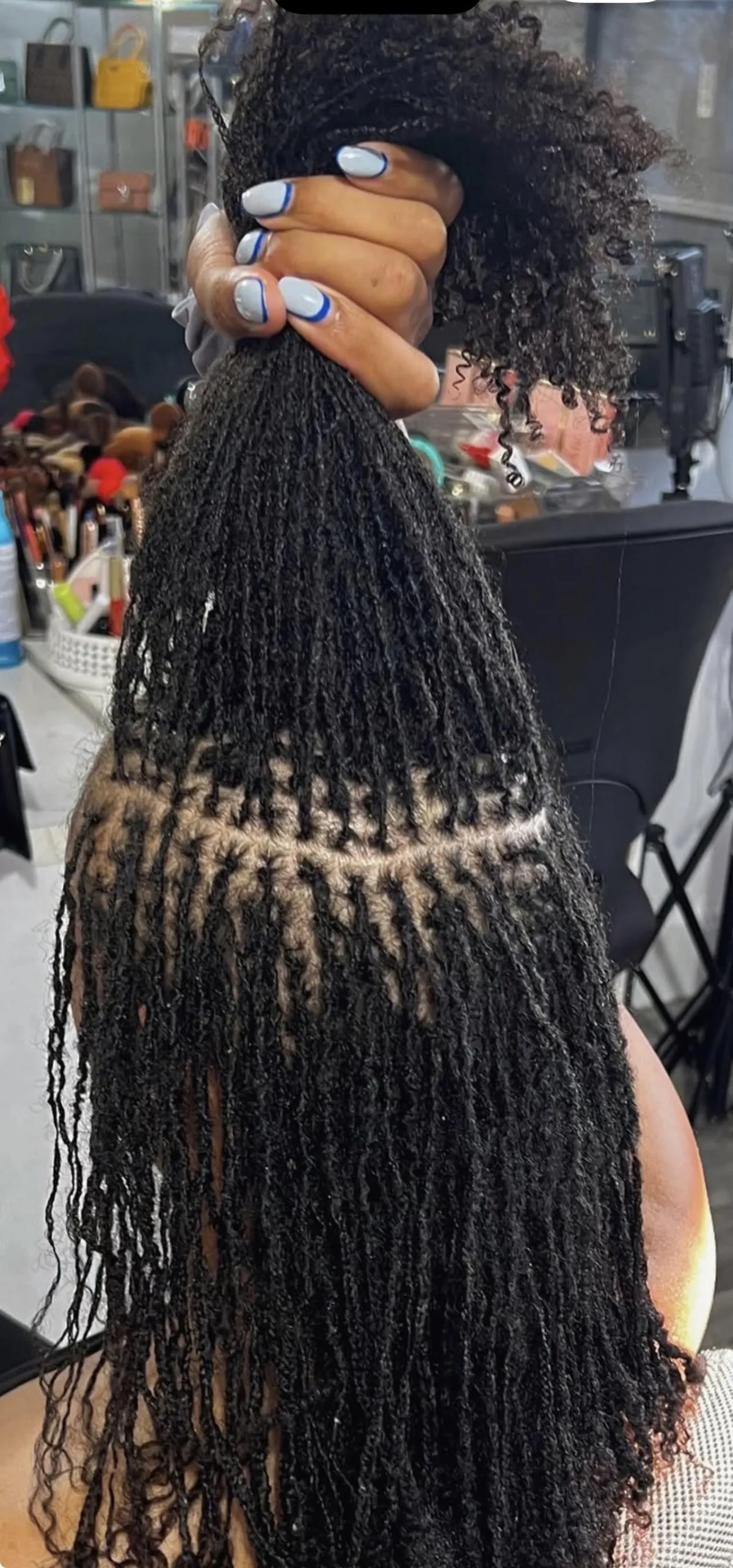 Micro Locs provide a neat, detailed appearance with a natural feel. They are perfect for clients who want smaller locs that offer fullness, styling freedom, and manageable maintenance.
